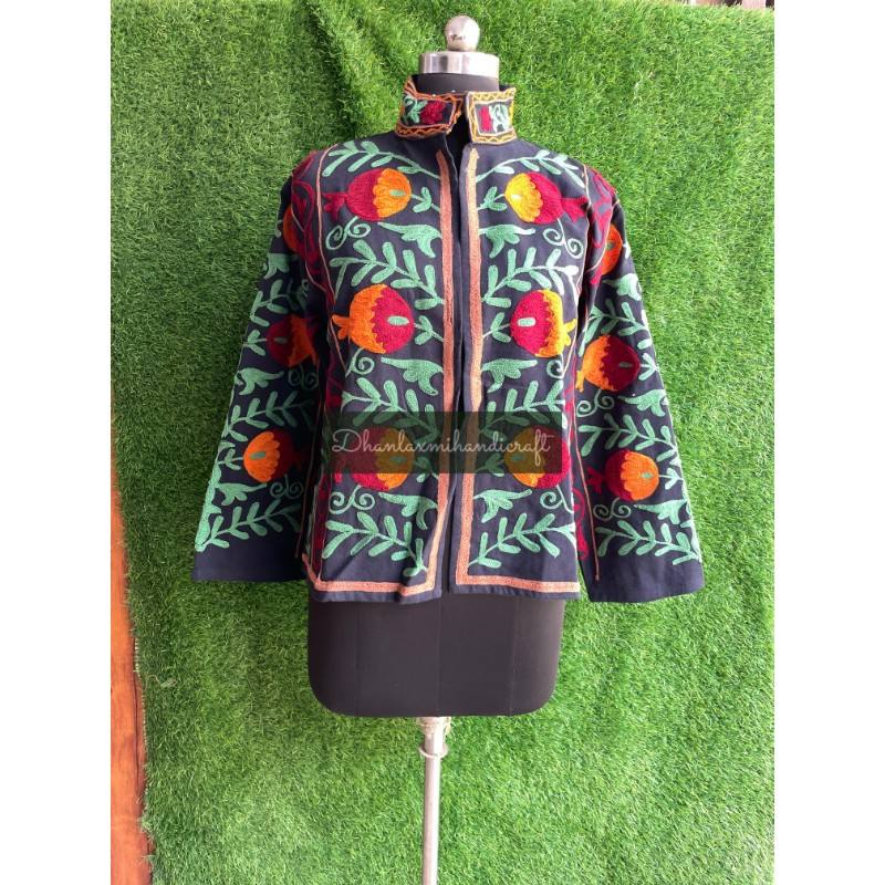 Unisex Indian Textile Hand Embroidery Jacket Cotton Suzani Fabric Coat With No Closure for Casual Winter and Spring Party Wear