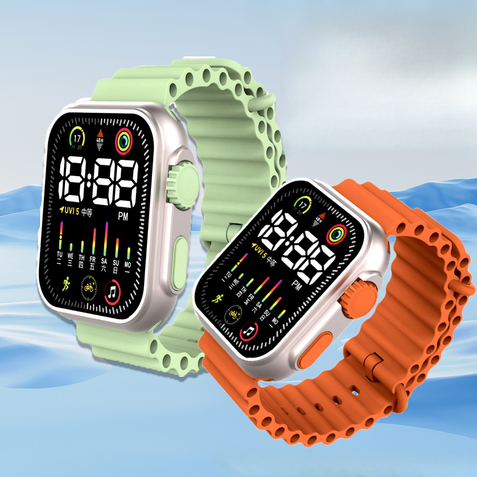 Unisex Kid Fashion LED Electronic Watch Digital Colored Rubber Strap Lights Dial Luxury Band for Students Sport Wrist Watch