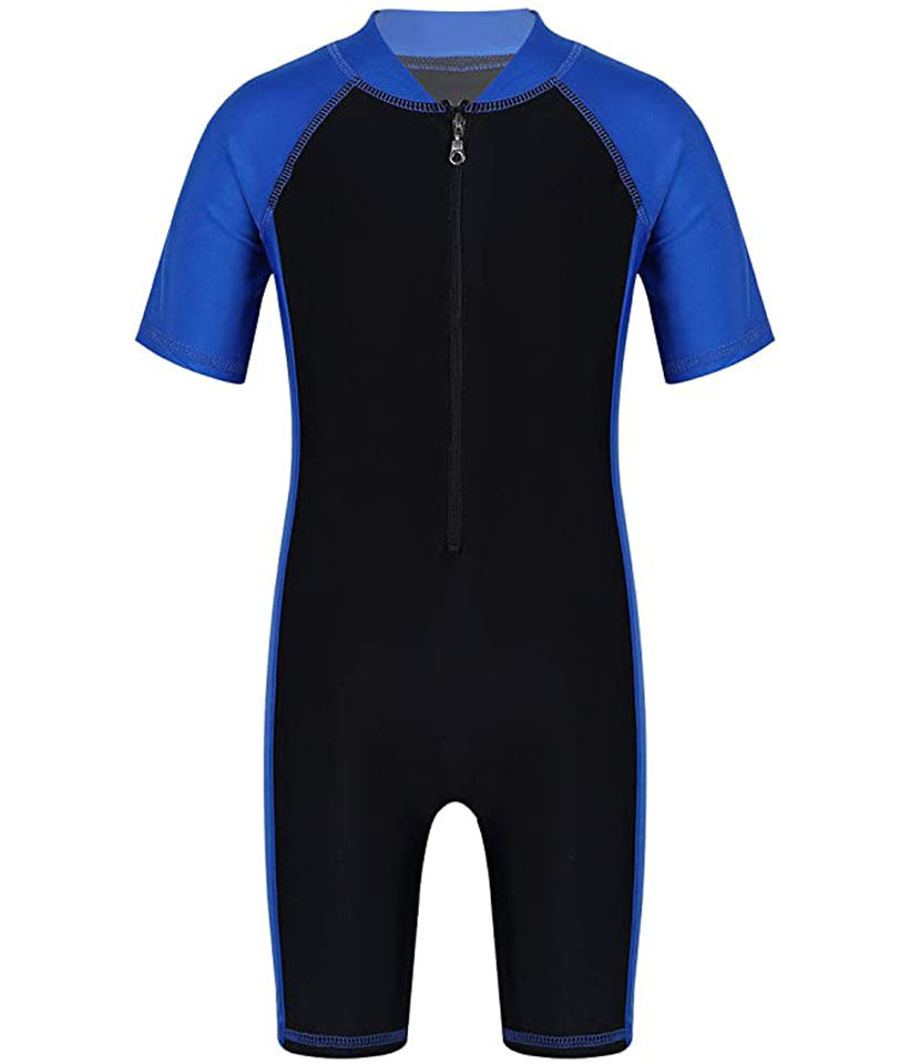 Unisex Kids Swimsuit Zippered Shorty Wetsuit with Short Sleeves Bathing Suit with Front Logo for Girls and Boys Haus Industries