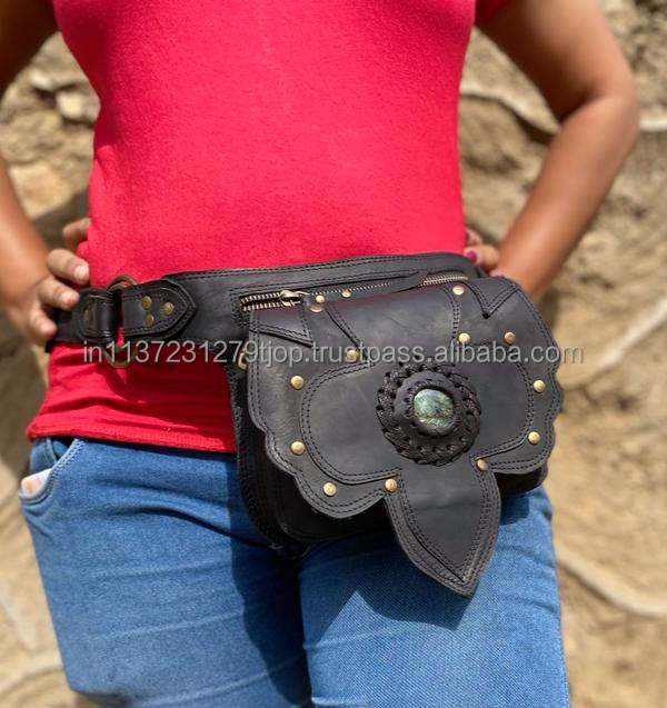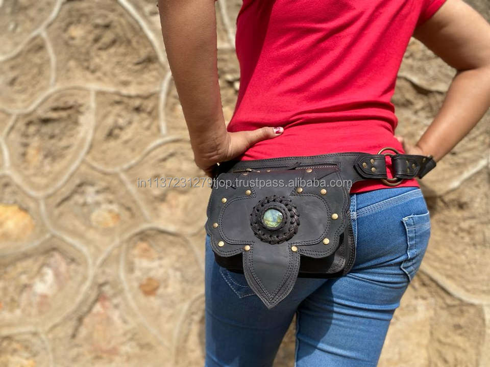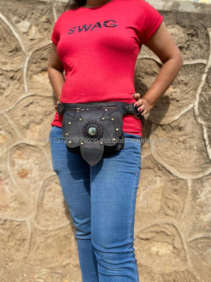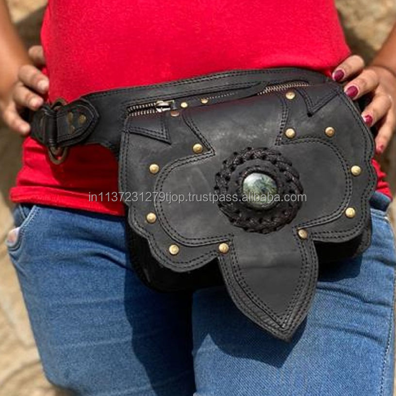 Unisex Leather Hip Pocket Belts Waist Bags Travel Belts Multi Uses Waist Bags Vintage Bags