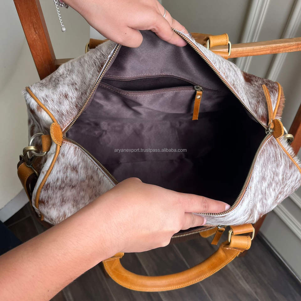 Unisex Lightweight Genuine Cowhide Leather Travel Gym Bag Wear-Resistant Short Distance Zipper Closer Fashionable Design Duffle