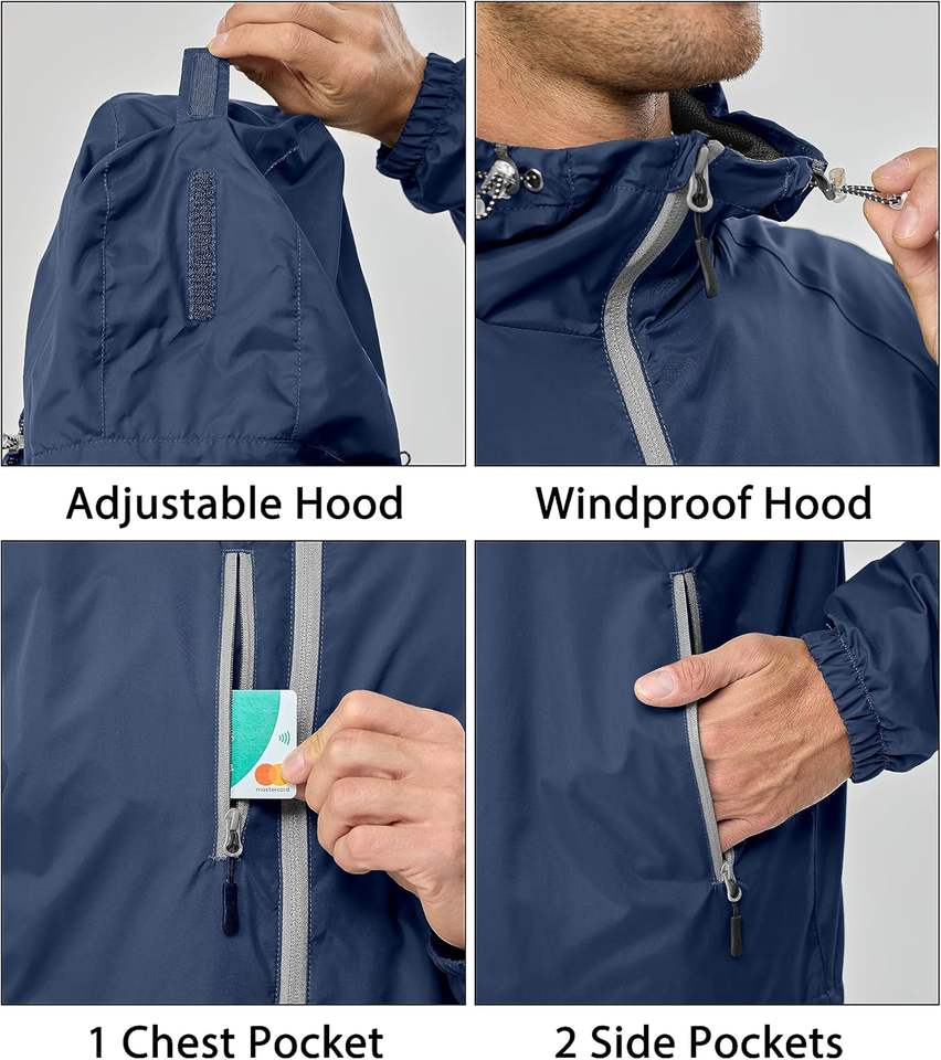 Unisex Lightweight Soft Shell Waterproof Windproof Breathable Hooded Jacket Zipper Closure Cotton for Hiking Running Golf Travel