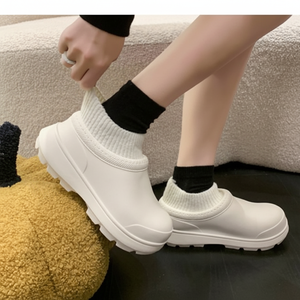 Unisex Lightweight Winter Snow Boots with Fur Lining Ankle Socks for Camping Couple Shoes