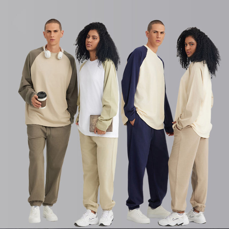 Unisex Loose Fit Long Sleeve Tee 245gsm Cotton Raglan Wholesale Custom Logo for Men Women
