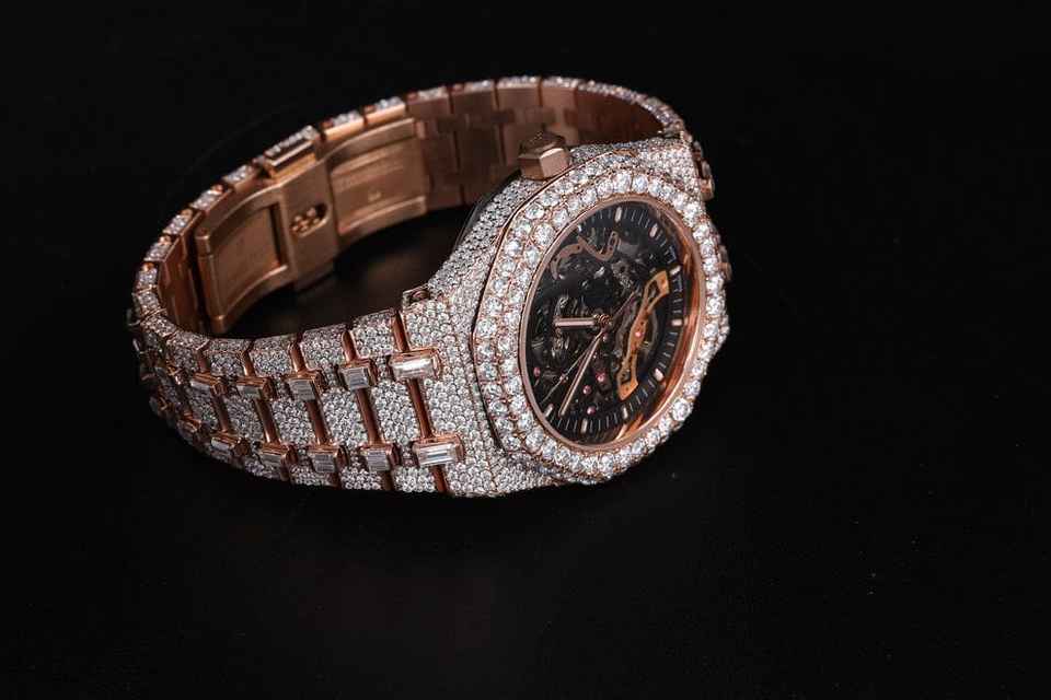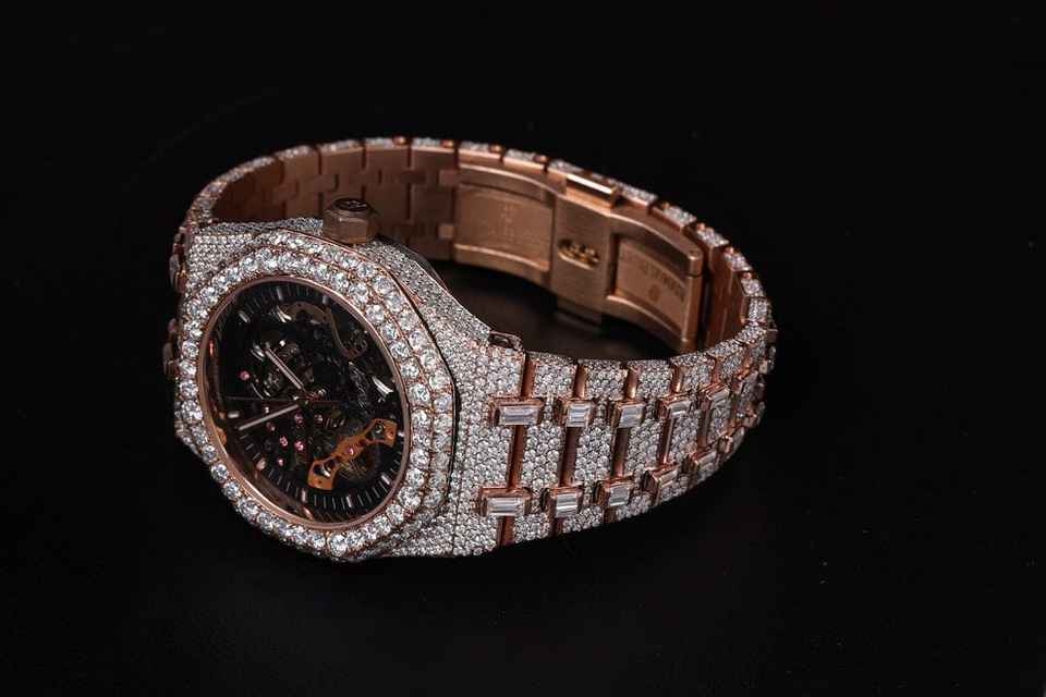 Antiqued Full Iced Moissanite Baguette Diamond Watch