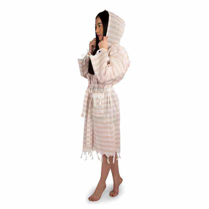 Unisex Luxury Bathrobe and Towel Set XL Size 100% Cotton Handwoven Quick Dry Striped Stylish Soft for Adults for Hotels