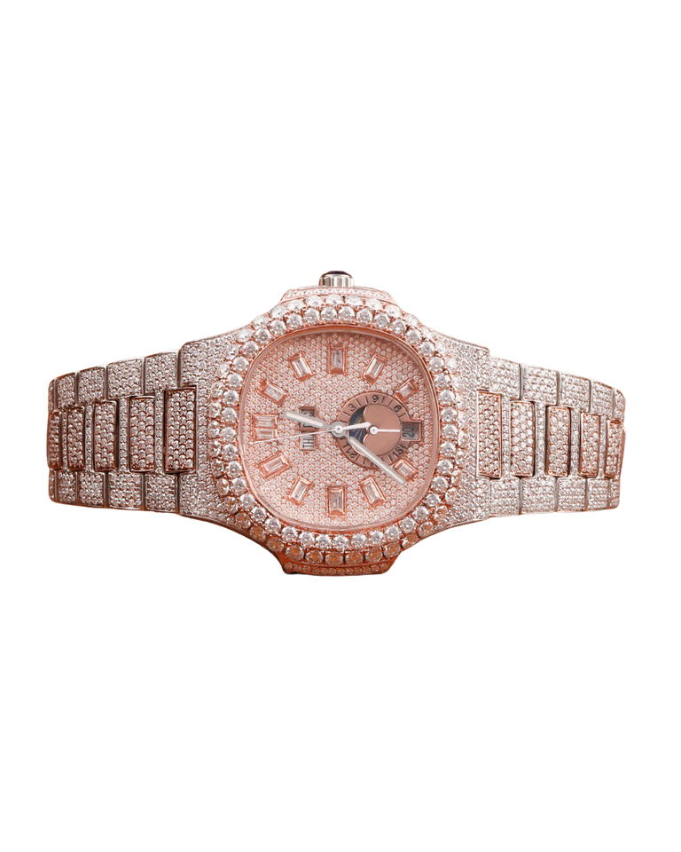 Unisex Luxury Full Round Cut Rose Gold Iced Out Dial VVS Moissanite Diamond Watch Trendy Hip Hop Style for Men