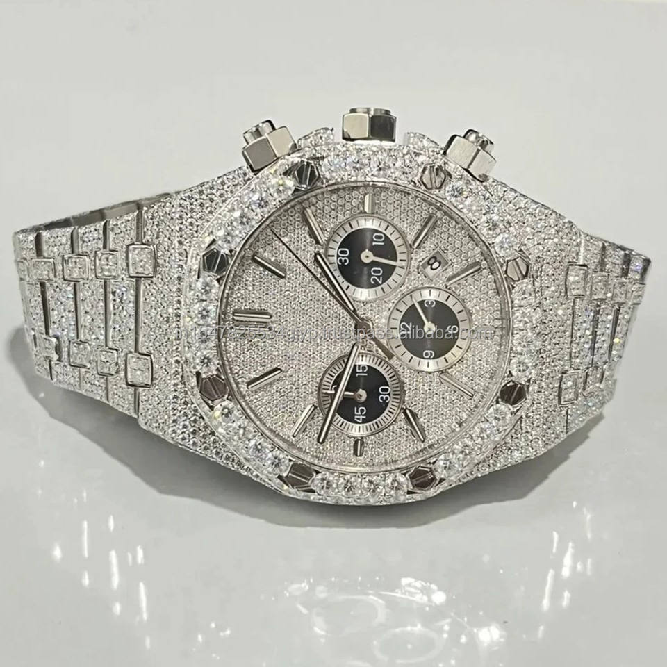 Unisex Luxury Hip Hop Stainless Steel Wrist Watch Iced Out Diamond Dial Tw Tone Plating Analog Display with 5mm Case Thickness