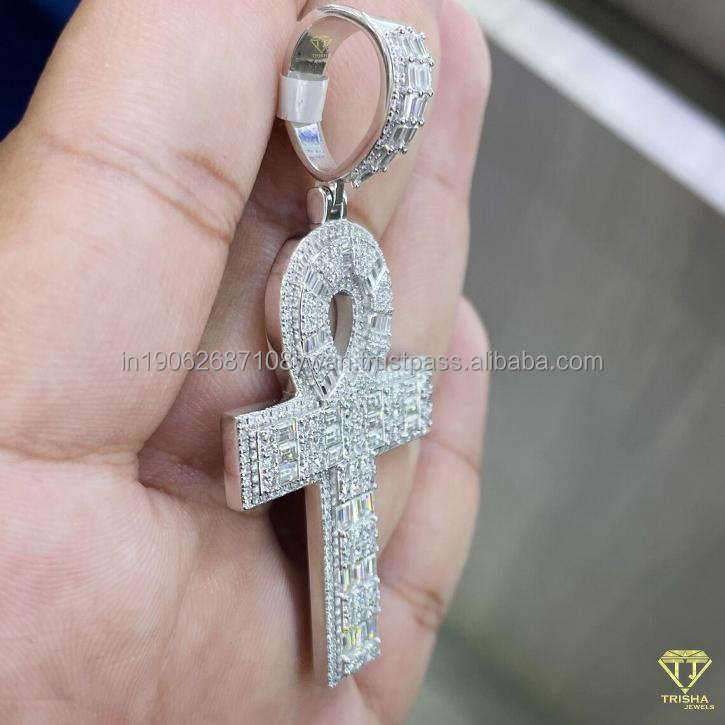 Unisex Luxury Iced Ankh Cross Pendant Sparkling VVS Lab Grown Diamond Crystal Jewelry Zirconia Hip Hop Style Statement Religious