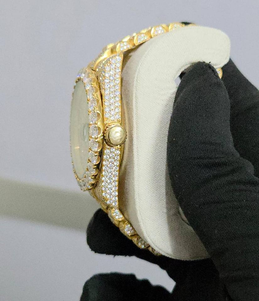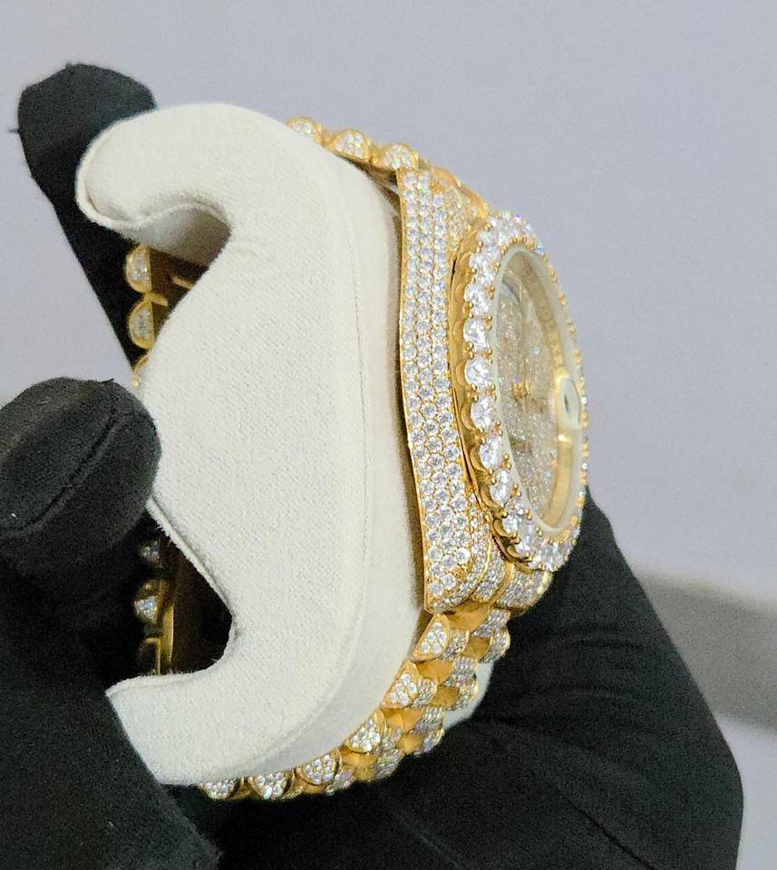 Unisex Luxury Silver Analog Diamond Watch Handmade Band Full Iced Glass Automatic Dial Stainless Steel Case Miyota 41mm Date