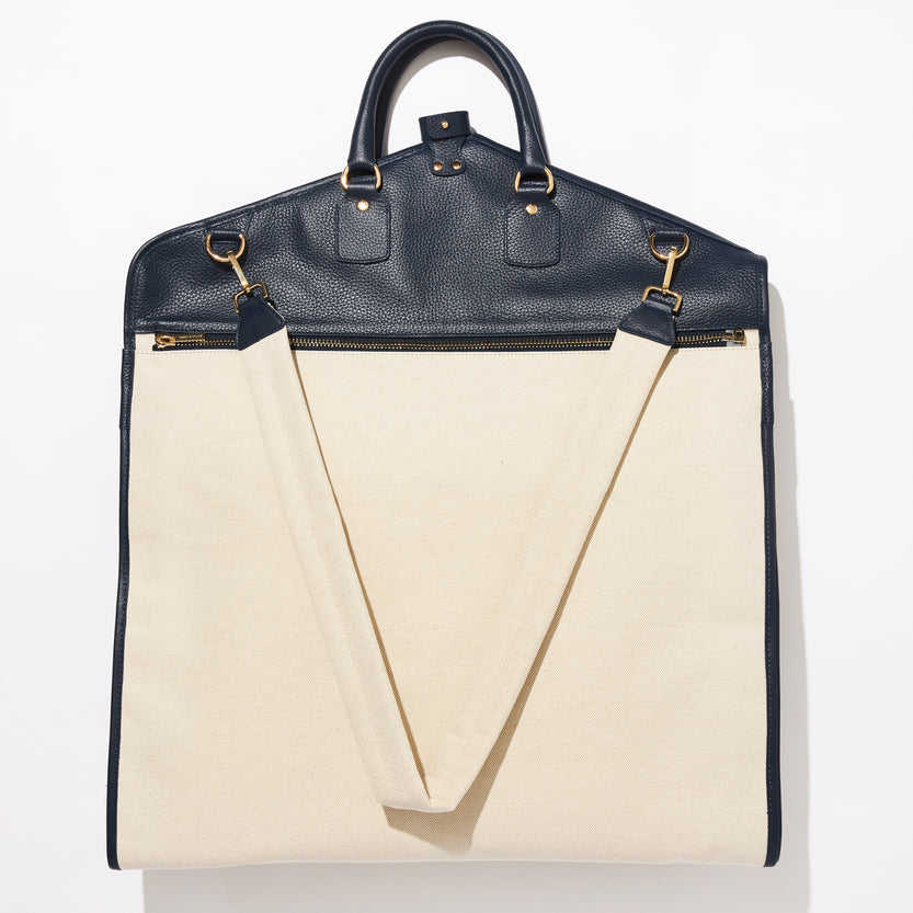 Unisex Luxury Travel Garment Suit Bag with Zippered Organizer for Daily Life Portable Canvas and Leather Cover