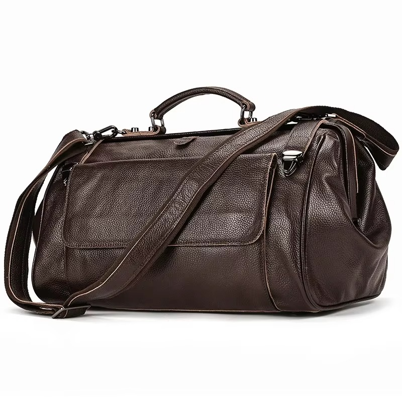 Unisex Luxury Vintage Hiking Backpack Lightweight Genuine Leather Water-Resistant Foldable 20-36L Weekend Duffle Zipper Closure