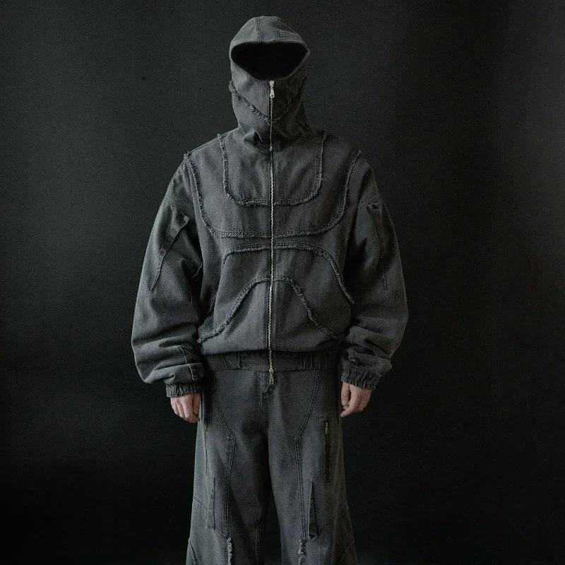Unisex Men's Gothic Vintage Print Hoodie High Street Punk Style Zip-Up Oversized Leisure 100% Cotton ODM Knitted Weaving