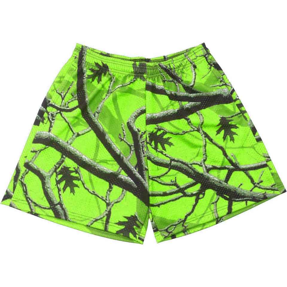 Unisex Mesh Sports Shorts Custom Design Quick Dry Tropical Camouflage Tree Print Summer Breathable Gym Running Mid Drawstring