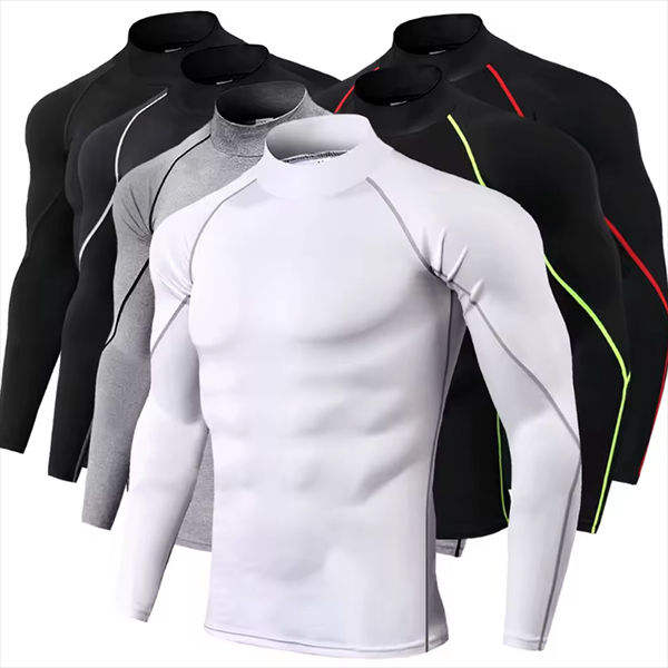 Unisex Mock Neck MMA Rash Guard Compression Shirt Long Sleeve Breathable Gym Fitness Workout Quick Dry Athletic Training Sports