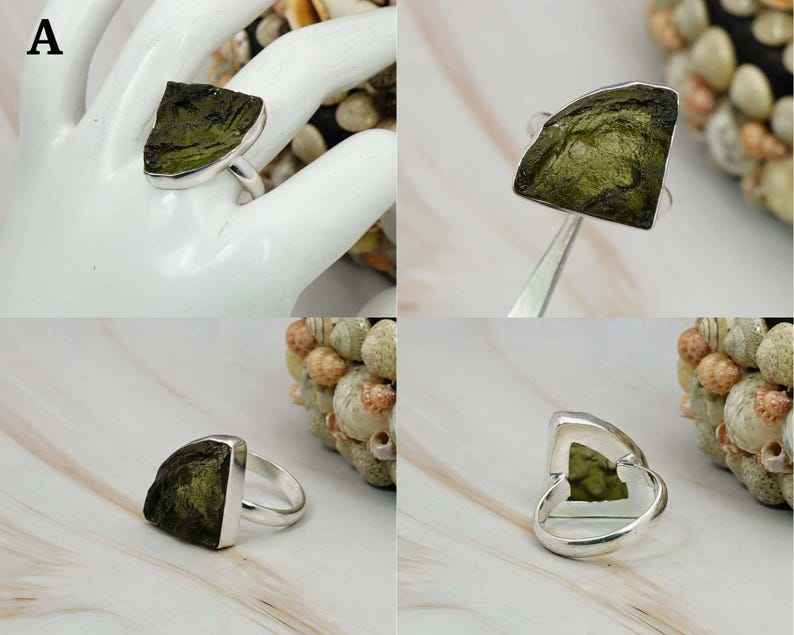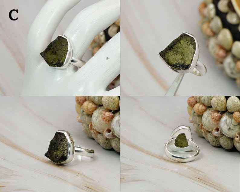 Unisex Moldavite Ring Crafted with Certified Raw Moldavite and Durable 925 Sterling Silver for Everyday Wear