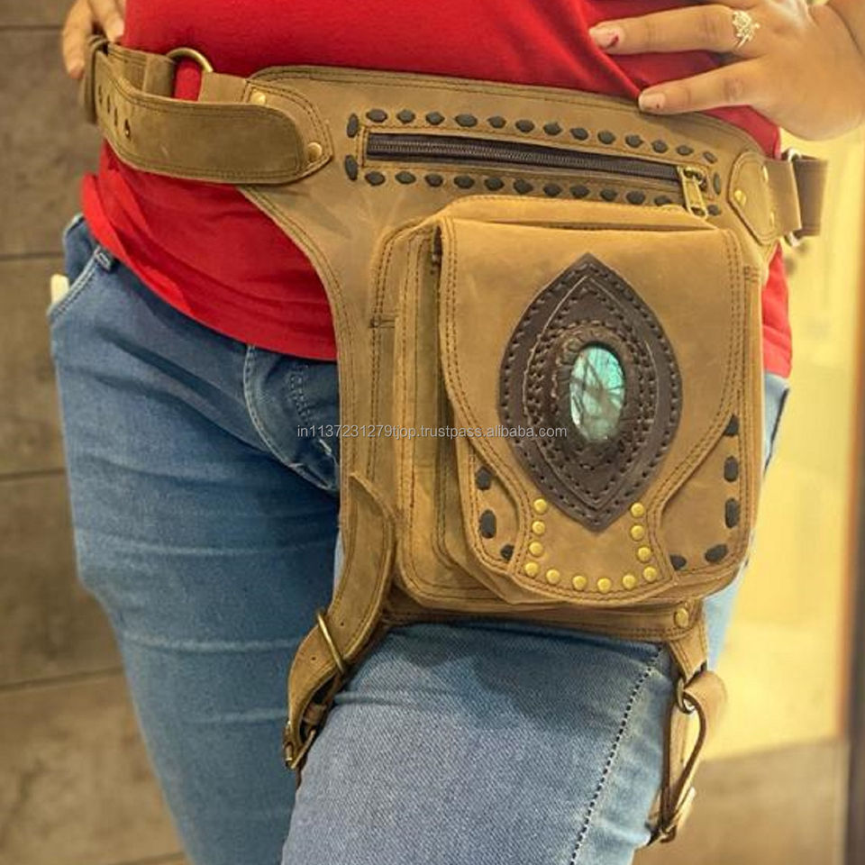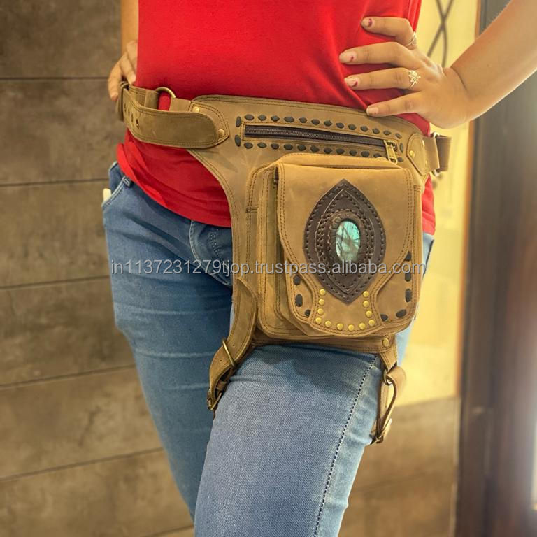 Unisex Motorcycle Hip Pocket Belts Travel Belts Waist Pocket Bum Bags Leather Biker Belts