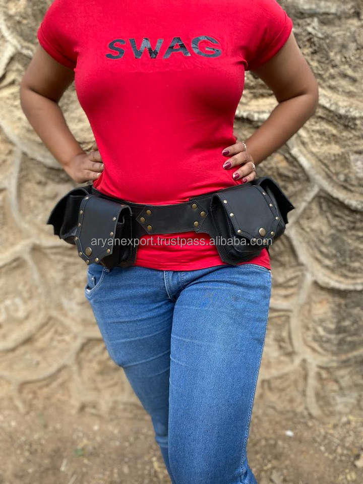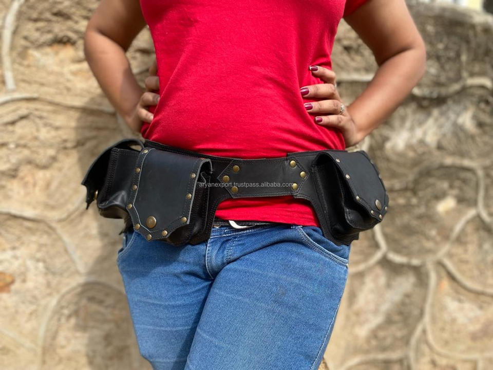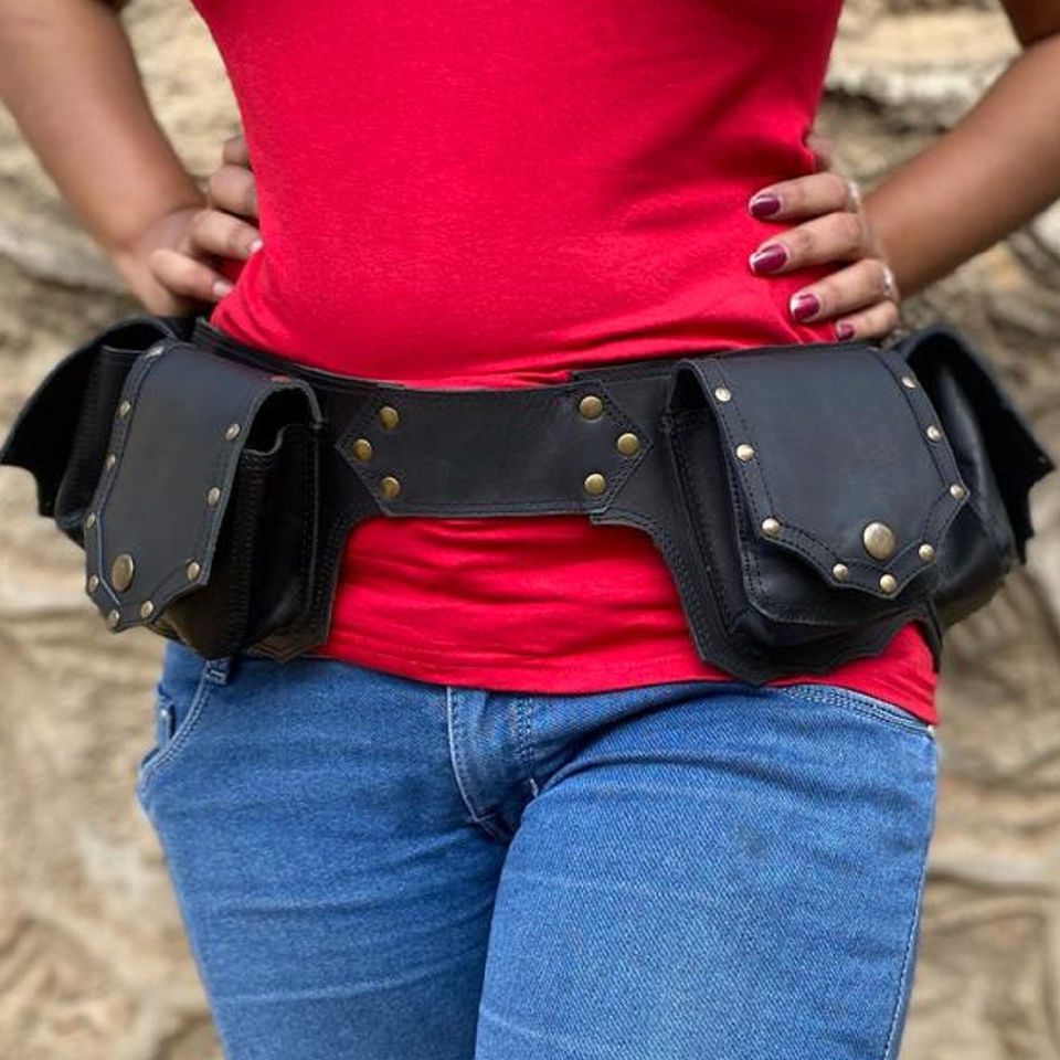 Handmade Real Cowhide Leather Utility Fanny Pack Belts Unisex 100% Genuine Leather Multi-Pocket Festival & Steampunk Waist Bags