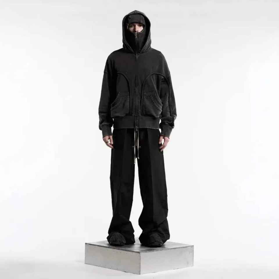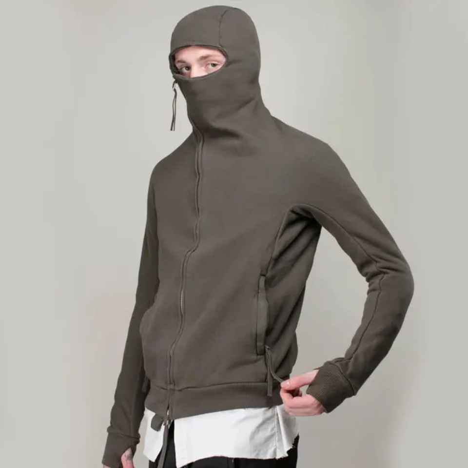 Unisex Ninja Hoodie 400gsm Cotton Fleece Face Mask Pullover Streetwear Outdoor Hoodies with 3D Blank Face Designed for Men