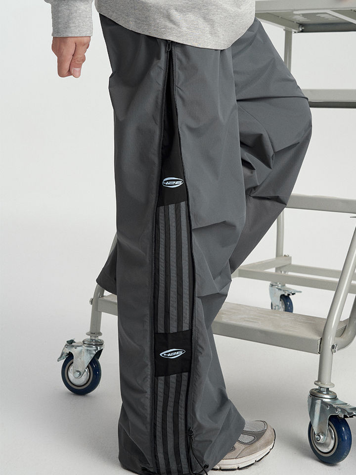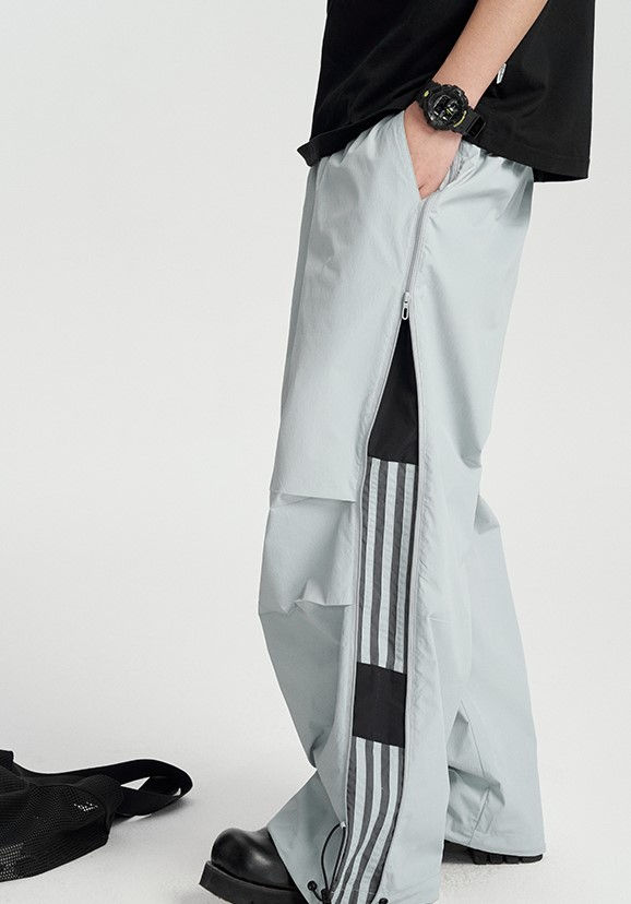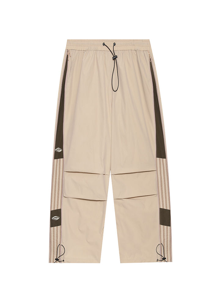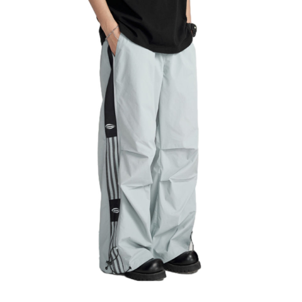 Unisex Nylon Cargo Pants Loose Fit Drawstring Waist Side Zip Pockets Jogger Style Casual Streetwear Trousers