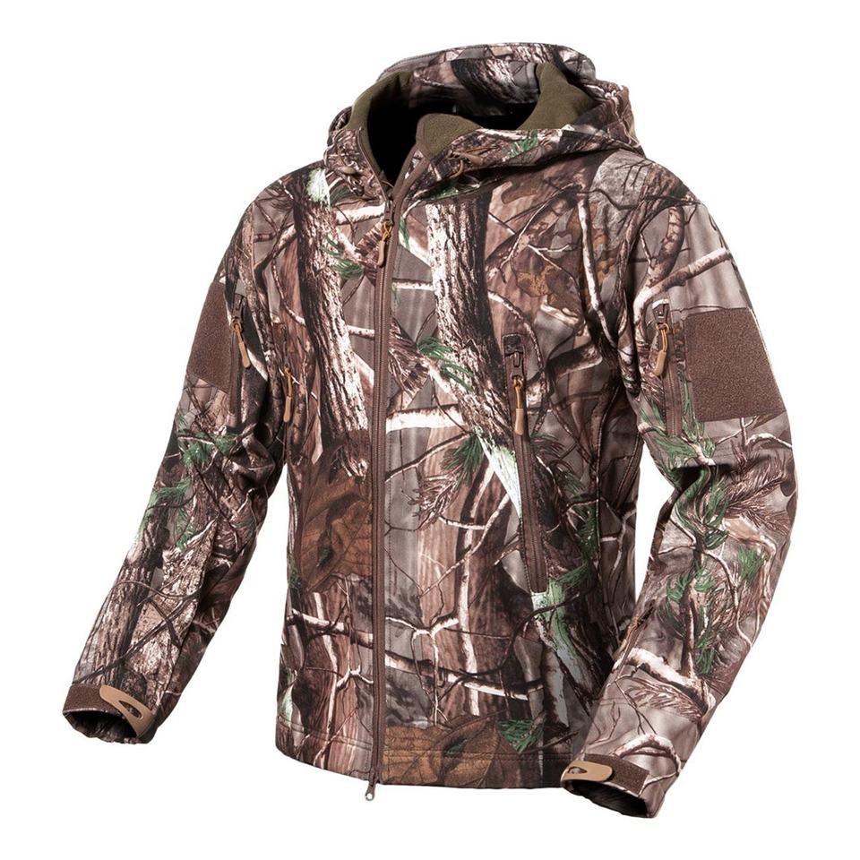 Unisex Outdoor Hoodie Custom Breathable Windproof Waterproof Soft Shell Jacket Plus Fleece Thick Tactical Combat Camouflage