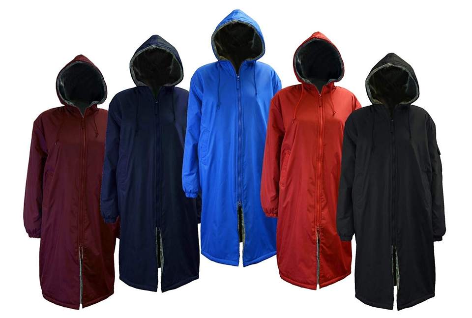 Unisex Outdoor Waterproof Fleece-Lined Swim Parka Towel Lined with Stand Collar Coated Robe for Changing