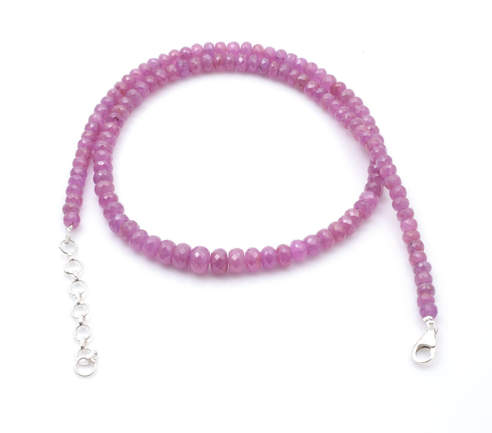 Unisex Pink Sapphire Fashion Accessory Ethereal Ethnic Style Link Chain Necklace with Rose Petal Beaded Charm for Gift Giving