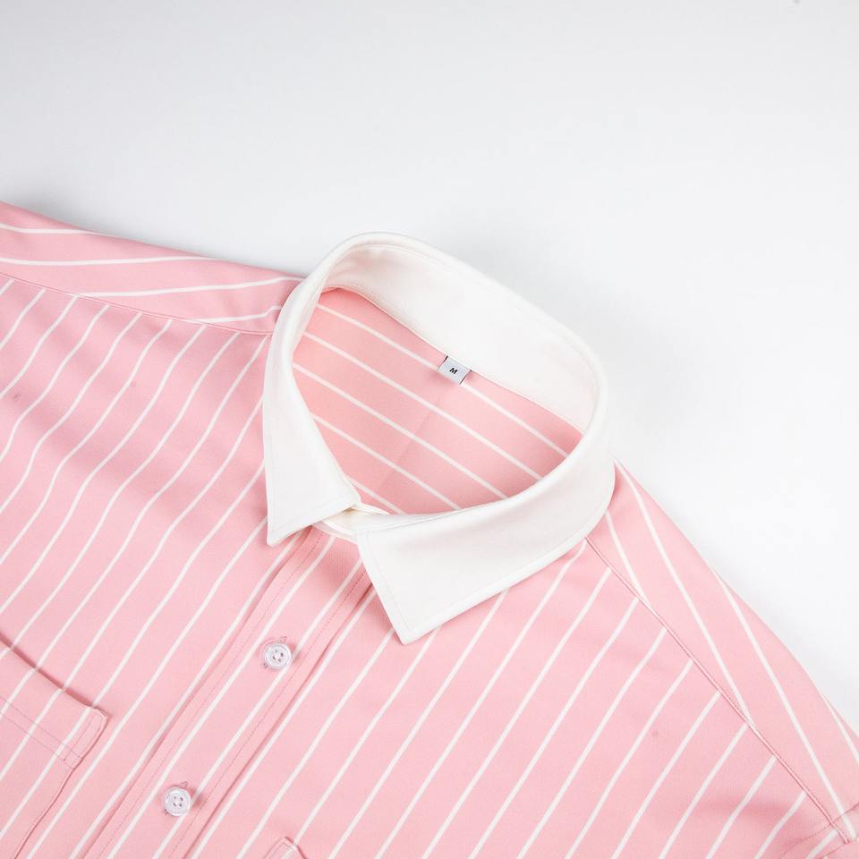 Unisex Pink Striped Oversized XL Tops Single Breasted Anti-Wrinkle Long Sleeve Vintage Casual Breathable Shirt for Spring Season