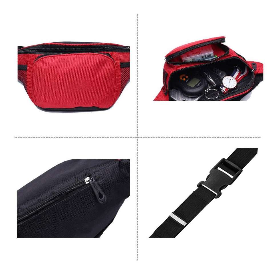 Unisex Polyester Waist Belt Bag with Zipper Closure Waterproof & Durable for Outdoor Activities