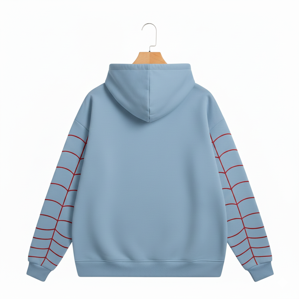 Unisex Powder Blue Graphic Hoodie Red Solid Design Winter Windproof Casual Streetwear Embroidered 100% Cotton Fleece OEM Service