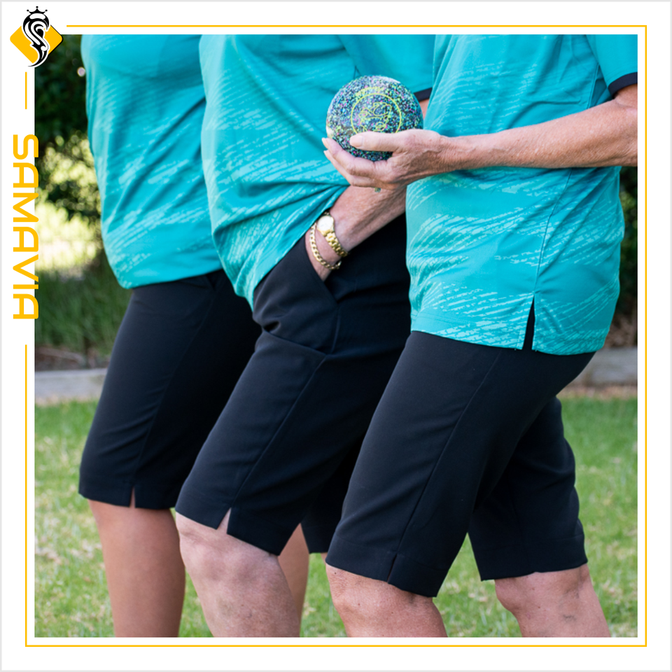 Unisex Premium Lawn Bowls Shorts Comfortable Quick-Dry Polyester with Customizable Elastic Waistband Mid Waist Pattern Decorated