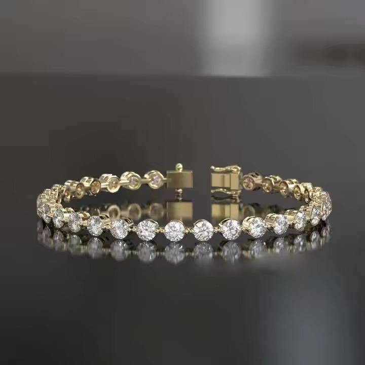 Unisex Premium Quality Moissanite Bracelet Latest Platinum Channel Setting Diamond Round Cut Sterling Silver and Gold Bangles