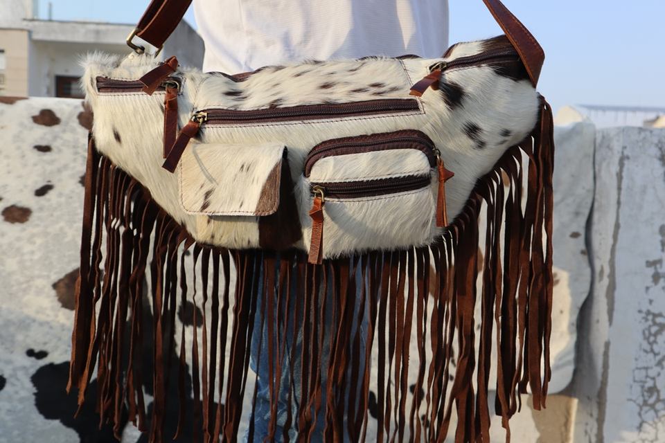 Unisex Real Leather Fanny Bag Waist Backpack Western Cowhide Hair on Unique Fanny-Pack Bag With Adjustable Shoulder Strap