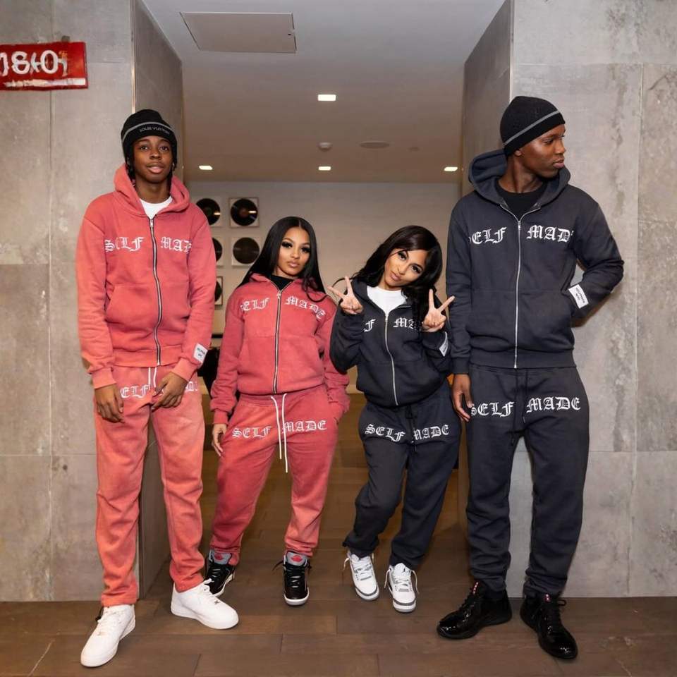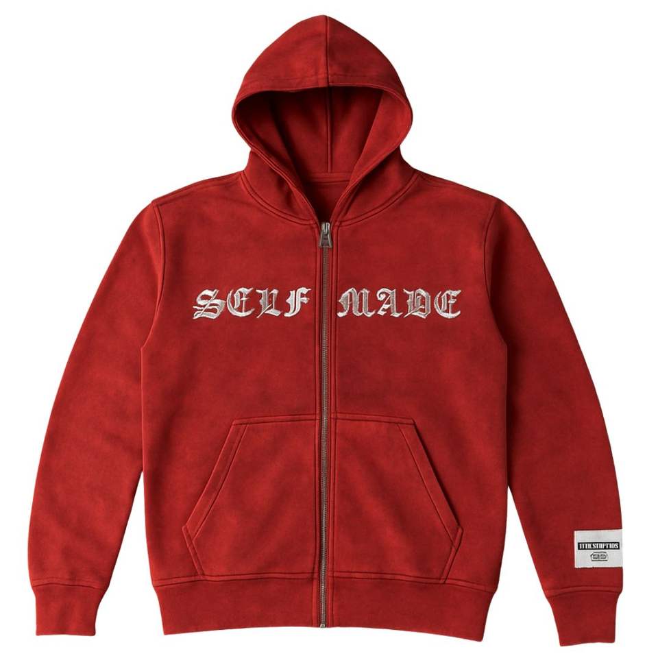 Unisex Red Acid Wash Zip Up Hoodie and Sweatpants Sweatsuit Set Streetwear Tracksuit with Embroidered Letter Design