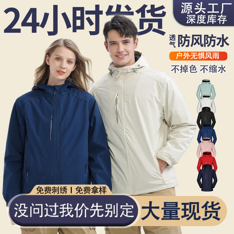 Unisex Red Windproof Waterproof Hiking Jacket With Hood Breathable Outdoor Wear For Spring Autumn Activities