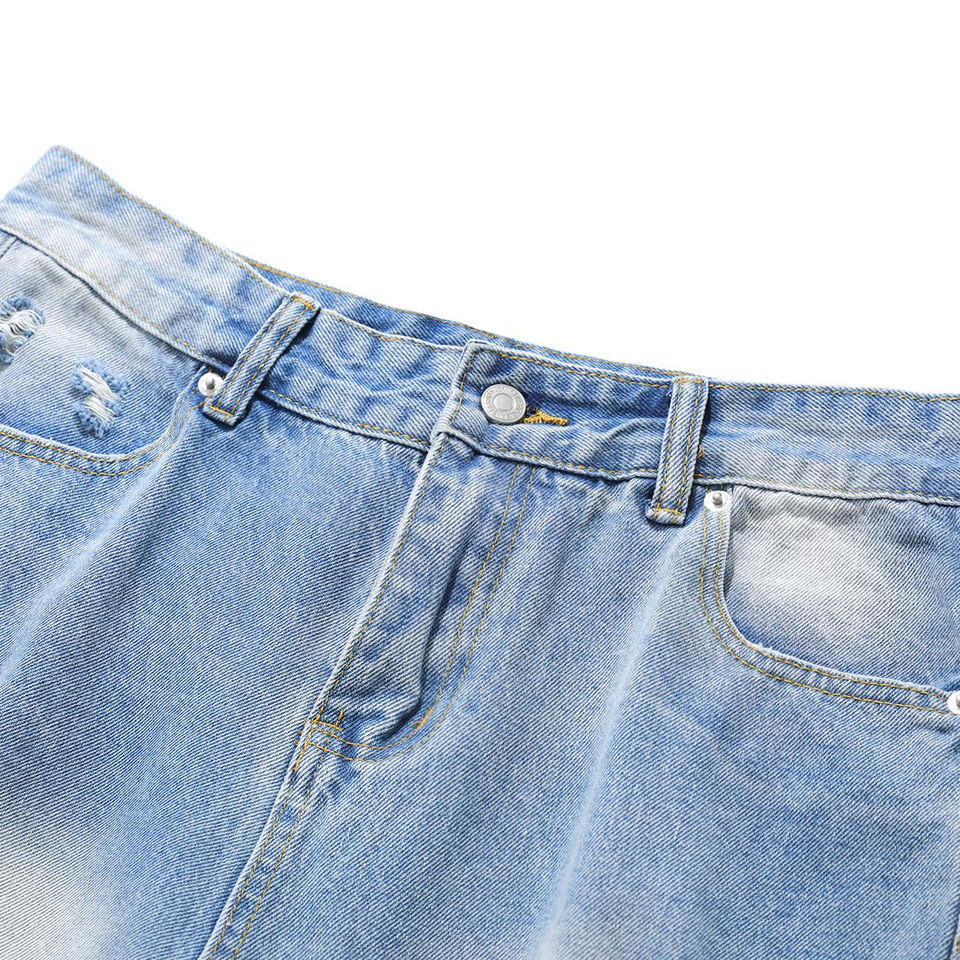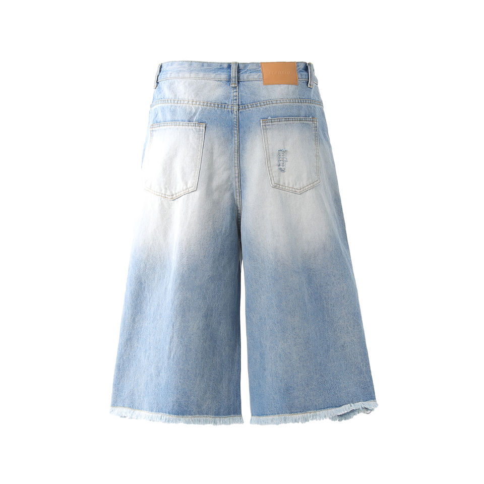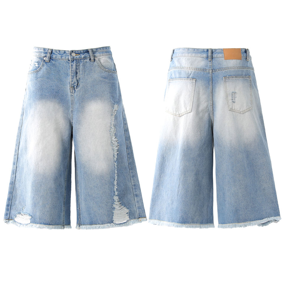 Unisex Retro Glacier Blue Distressed Denim Shorts Custom Wide-Leg Casual Shorts Unisex Trendy Relaxed Fit Jorts for Summer