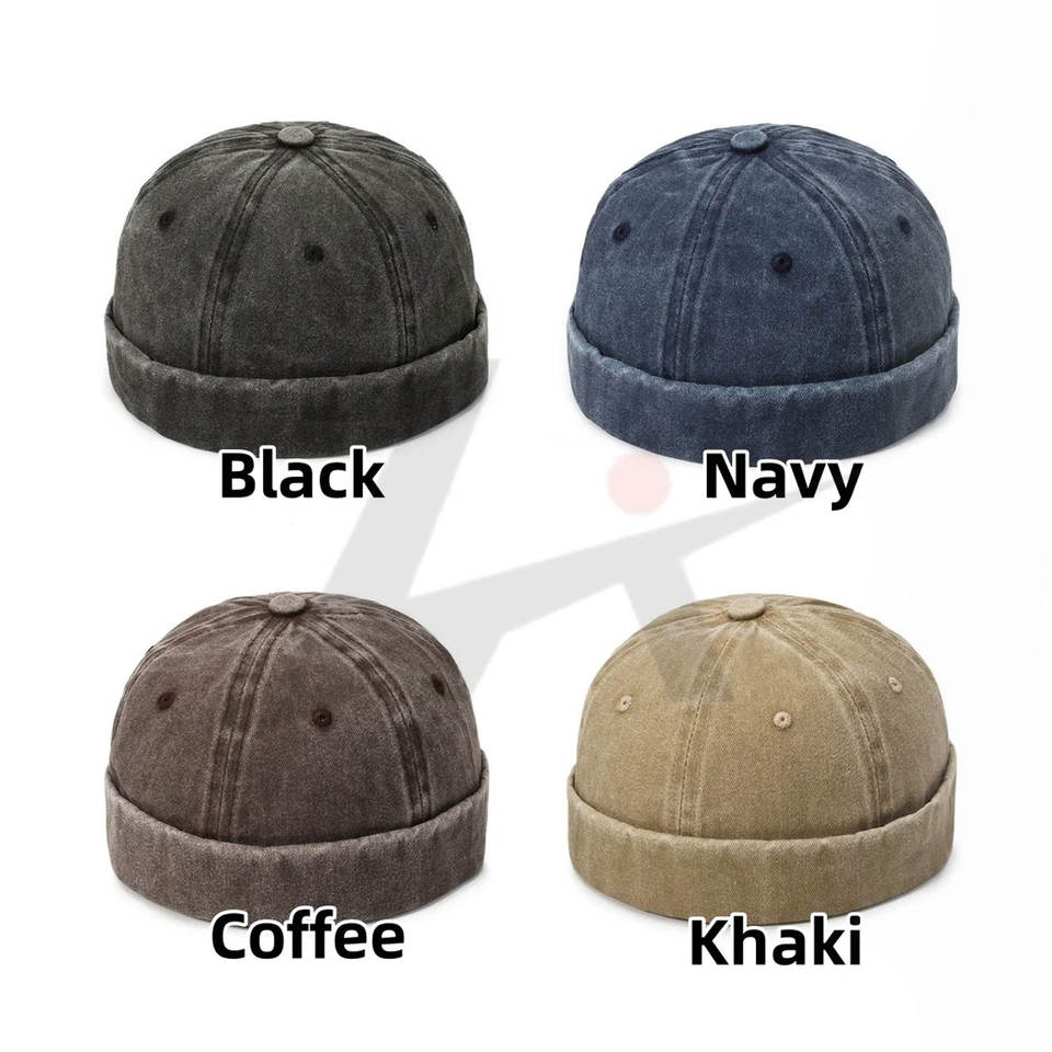 Unisex Retro Washed Cotton Beanie Hat Adjustable Melon Cap Character Hip Hop Style Skull Cap for Spring Autumn Skin Friendly