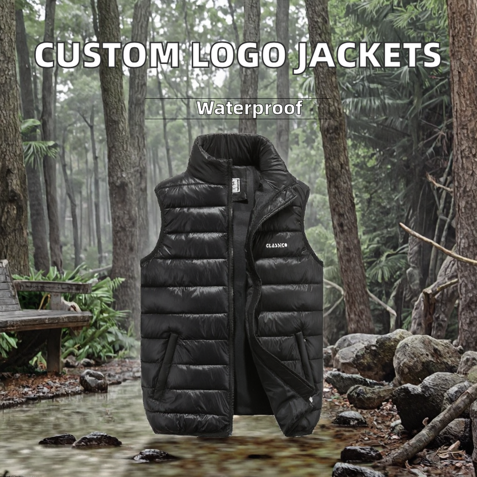 Unisex Slim Waistcoat Jacket Stand Collar Zipper Custom Logo Basic Casual Winter Vest for Men Women Sleeveless Blank Plain Coat