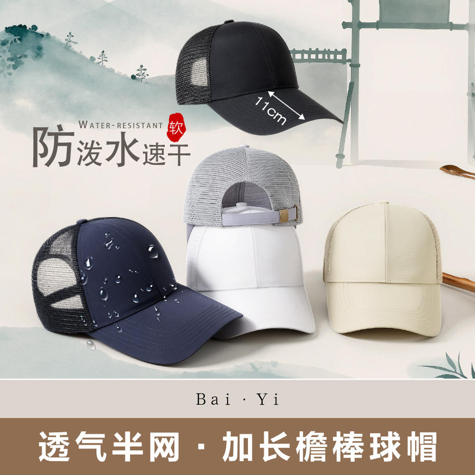 Unisex Solid Color Half Mesh Baseball Cap Dark Blue Breathable Waterproof Sun Protection Outdoor Hat