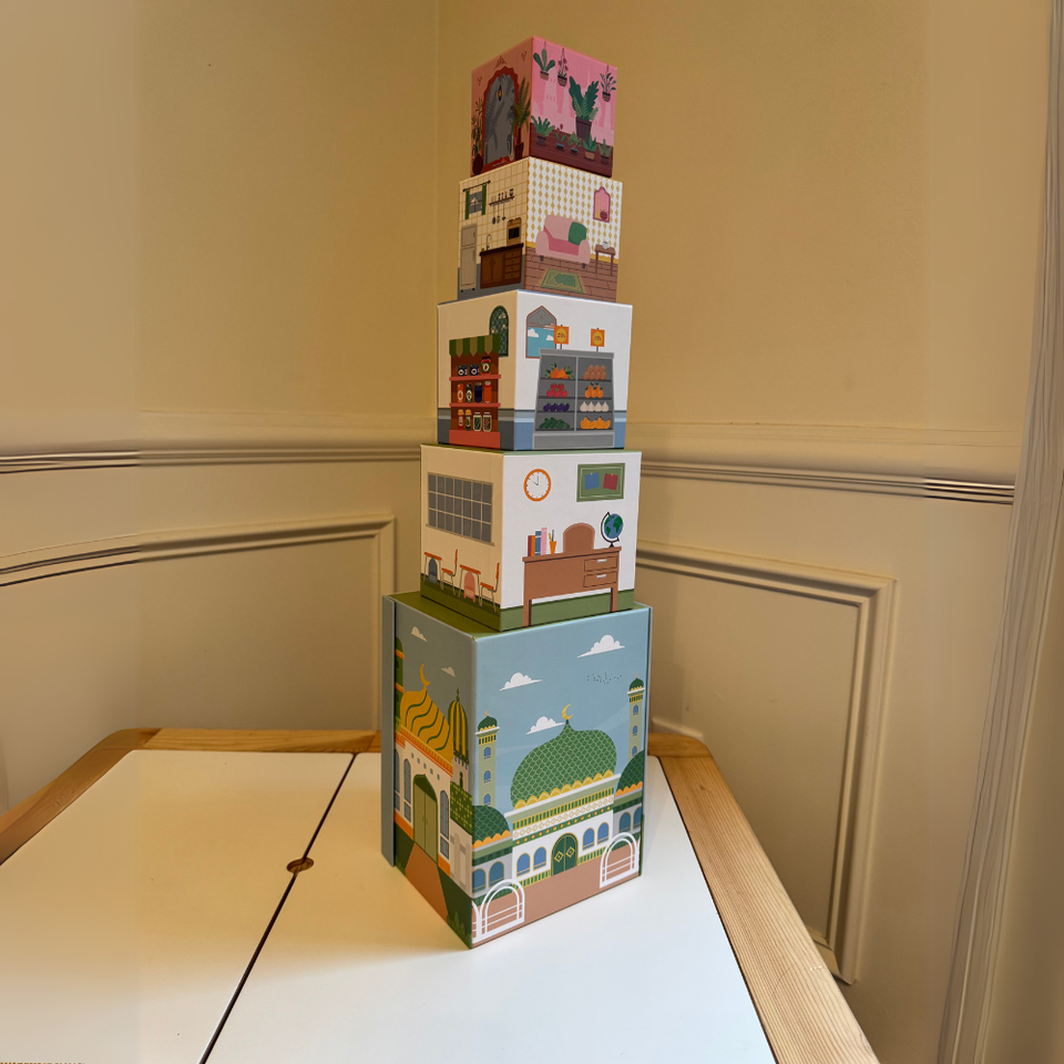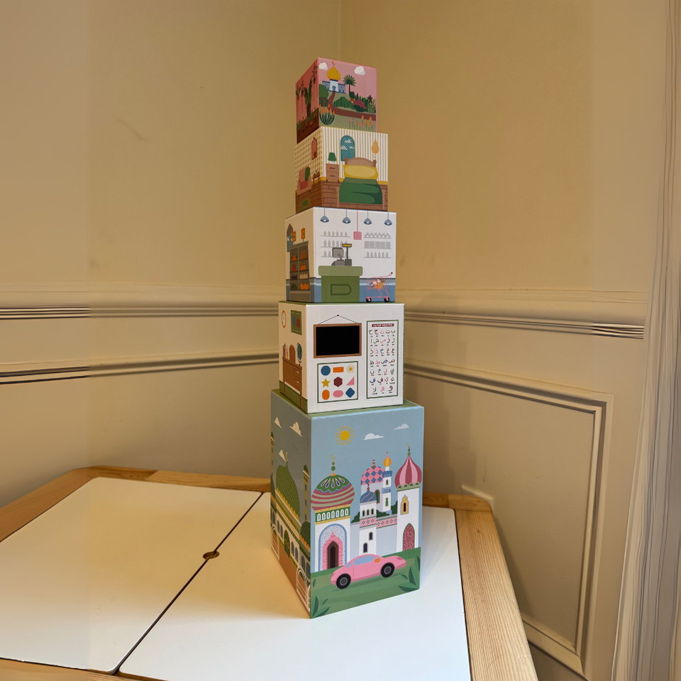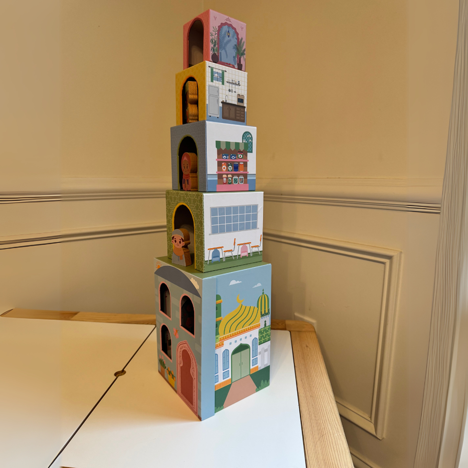 Unisex Solid Wood Muslim Kids Educational Toy Blocks Stacking Mosque & Home for 2-4 & 5-7 Years Age Ranges