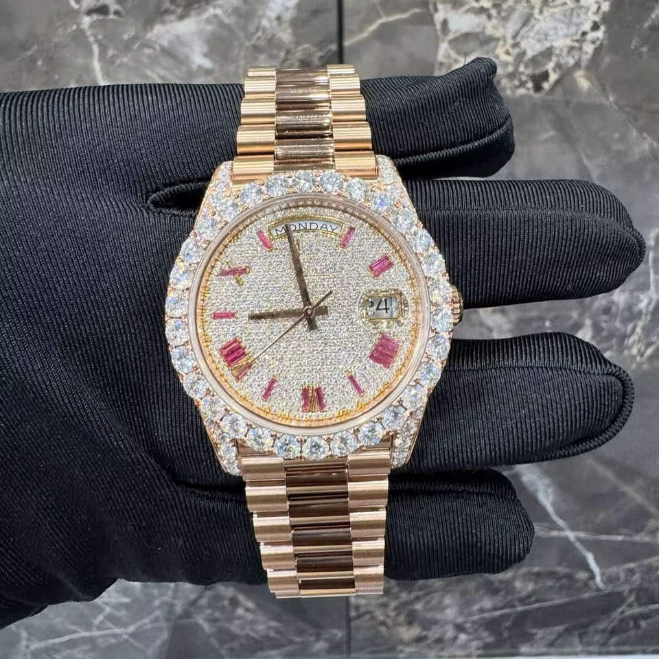 Unisex Stainless Steel Full White VVS1 Moissanite Diamond Half Iced Sport Elegant Glass Mechanical Watch High Quality Limited