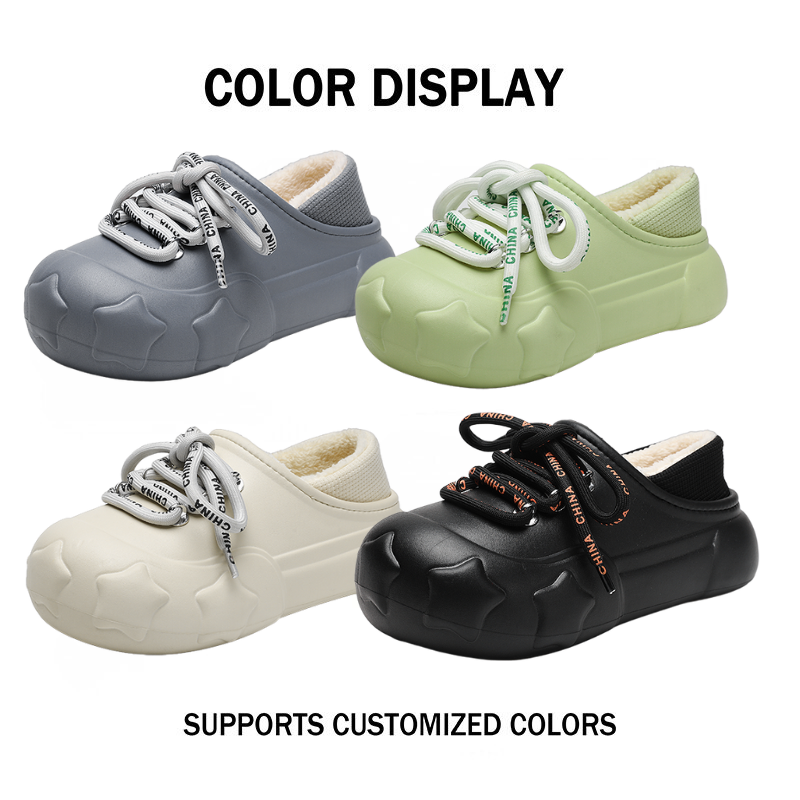 Unisex Star Sole Color-Block Fleece Lined Slippers Warm Slippers Non-Slip Wear-Resistant Home Outdoor Winter Shoes