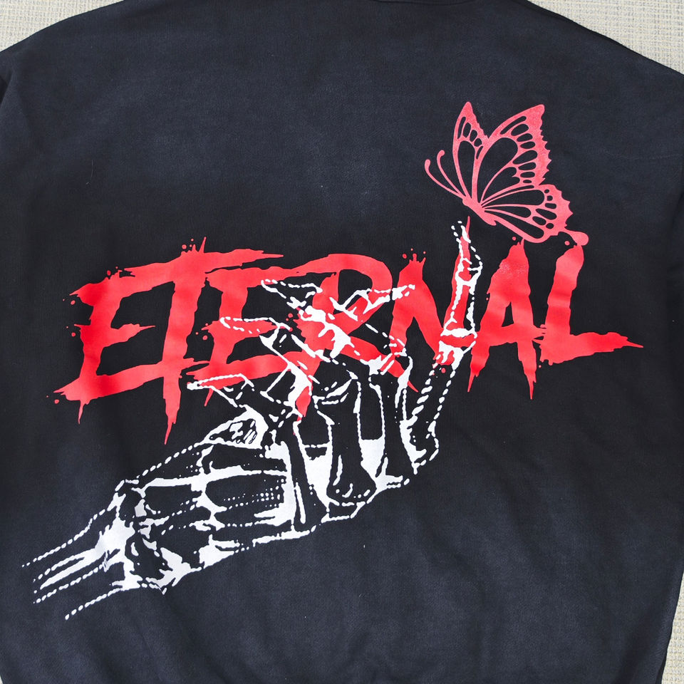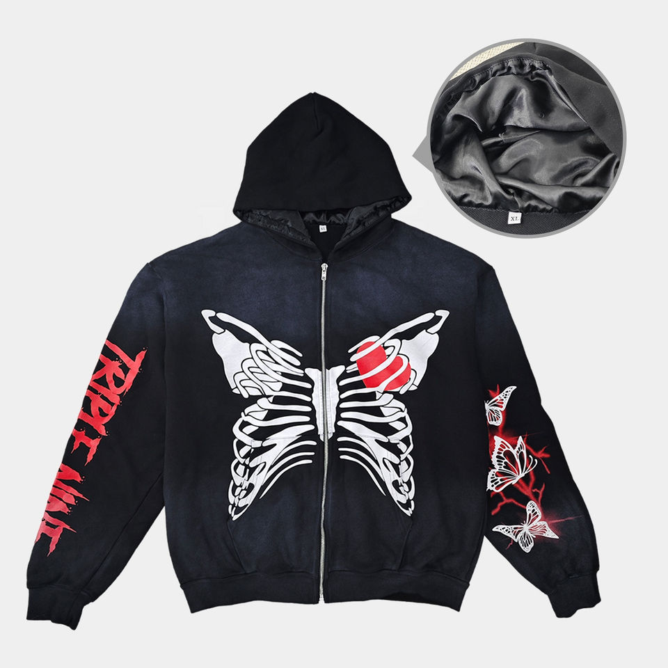Unisex Stylish Black Hoodie 100% Cotton Zip-Up Streetwear Men's & Women's Double Zipper Embroidered Head 3D Pattern
