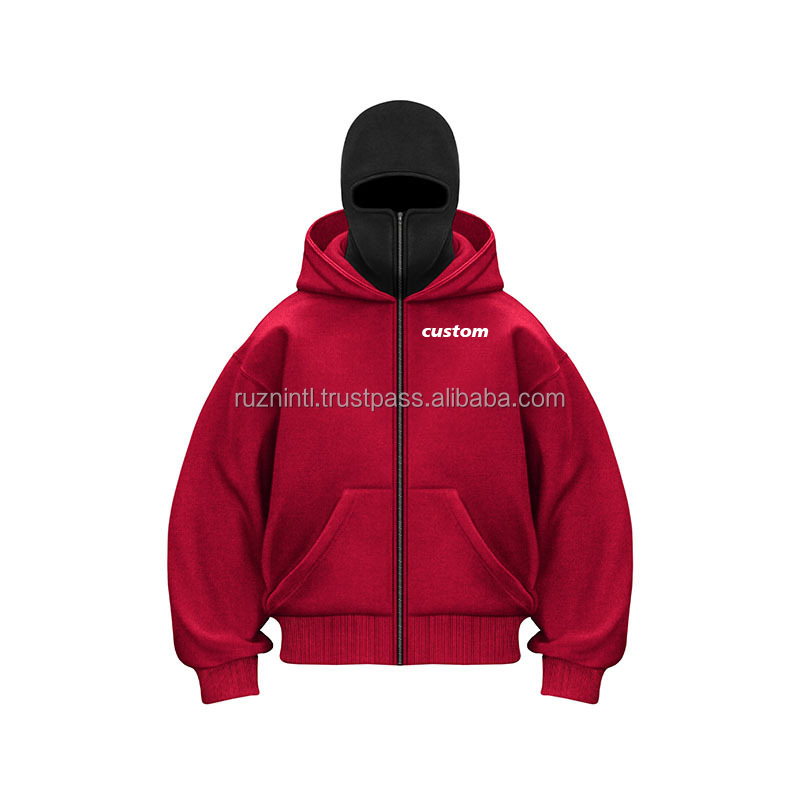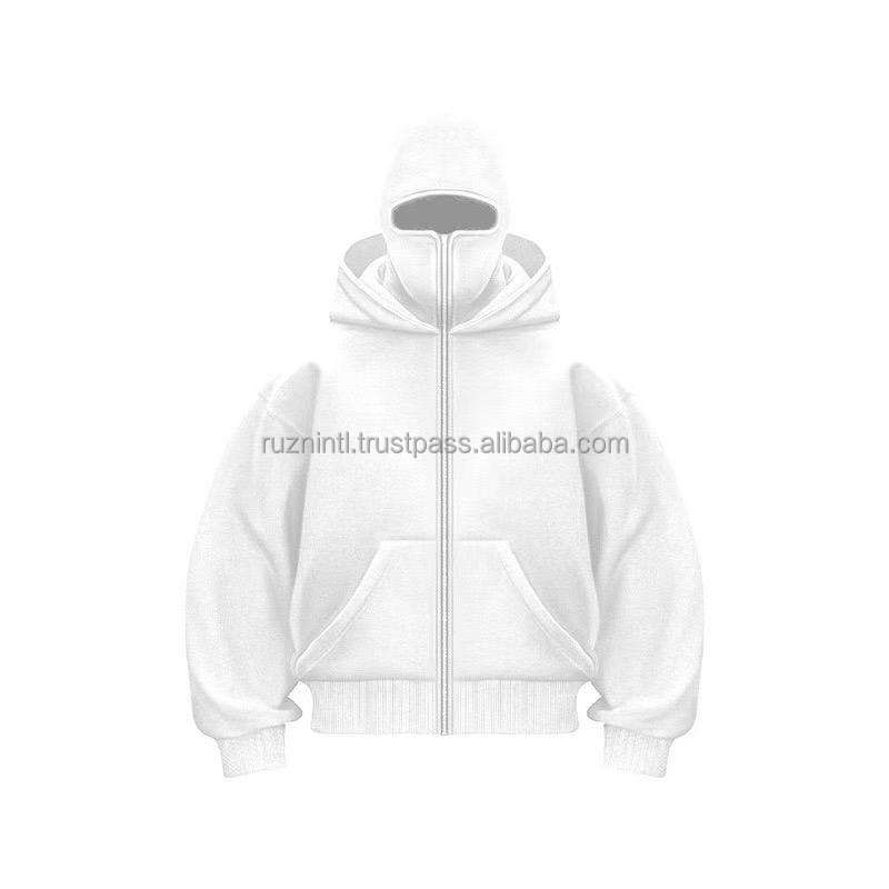 Unisex Thick Fleece Full Face Zip Hoodie Oversized Streetwear Mask Hooded Jacket Winter Warm Outdoor Casual Fashion Wear Style