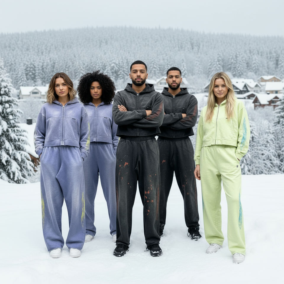 Unisex Thick Fleece Oversized Pullover Hoodie Trouser Streetwear Tracksuits Custom Printed Vintage Washed Distressed Winter