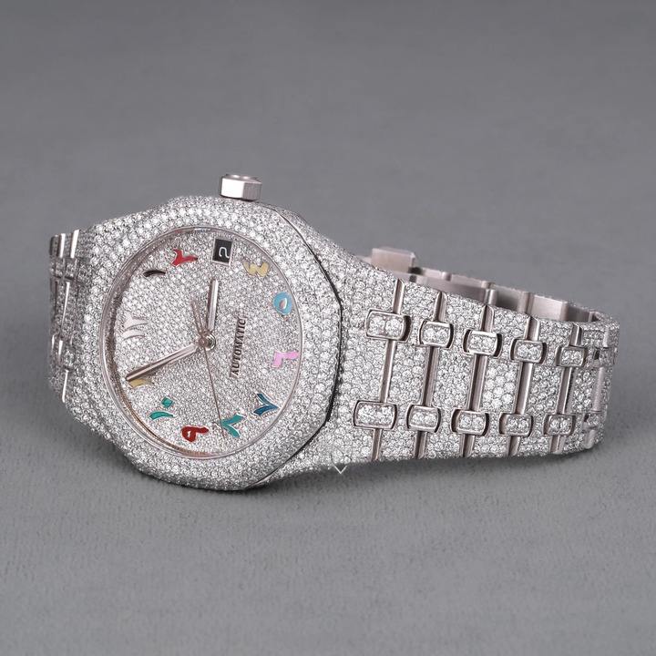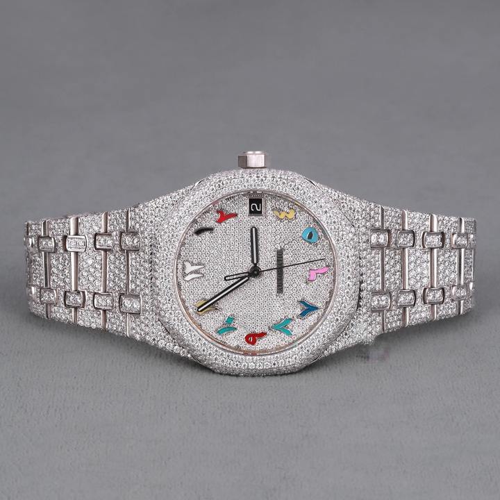 Unisex VVS Clarity Diamond Watch with 925 Sterling Silver Case Fully Iced Out Quartz Movement Luxury Color Stone Hip Hop Fashion