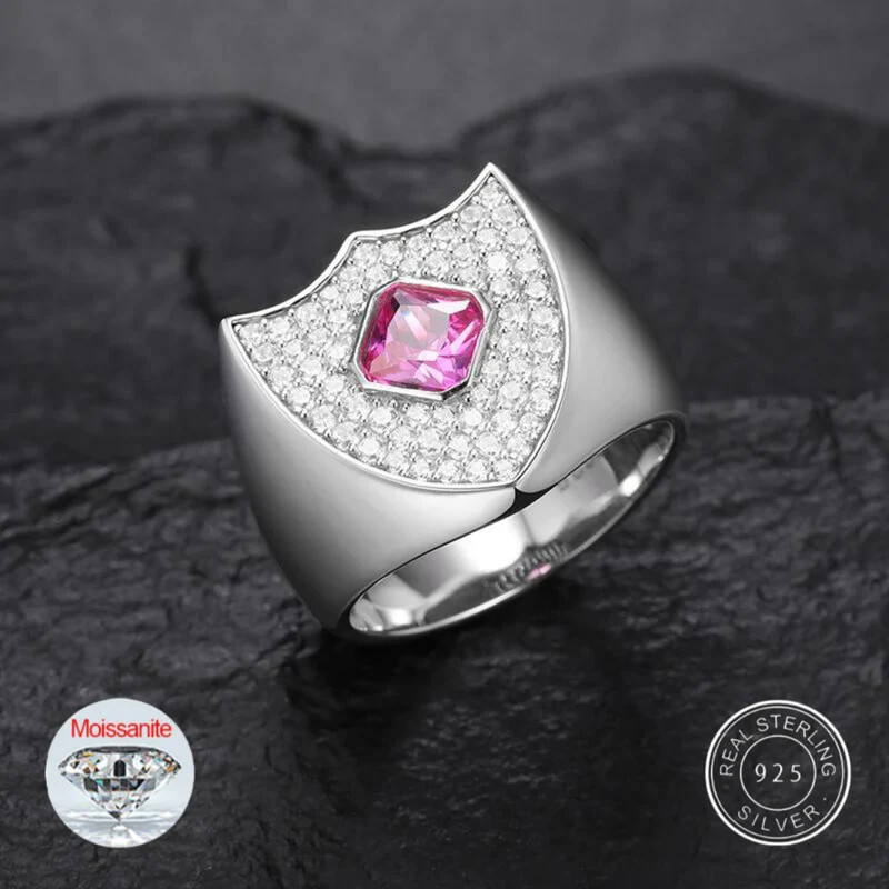 Unisex Classic 925 Silver Hip Hop Jewelry VVS1 Moissanite Rock Gift Ring with Natural Stone for Weddings Parties Men Women