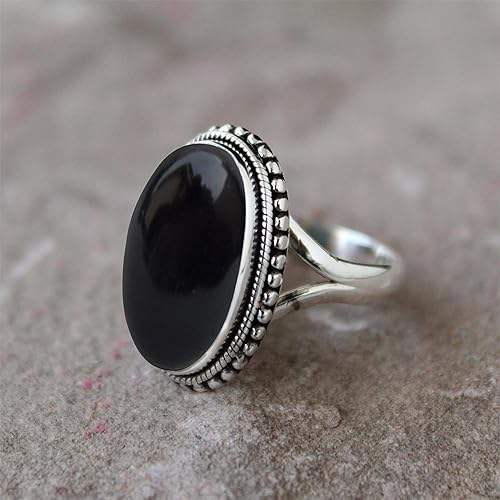 Unisex Vintage 925 Sterling Silver Statement Ring Natural Black Onyx Oval Gemstone Perfect Daily Wear for Unisex for Gift