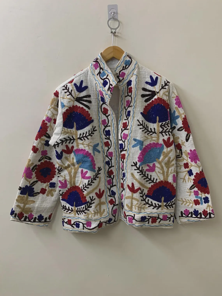 Unisex Vintage Boho Winter Jacket Suzani Embroidery Floral Velvet Coat Cotton Filling Ethnic Chic Outerwear Windproof Feature
