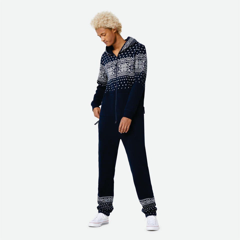 Unisex Vintage Midnight Blue Alpine Jumpsuit 50% Polyester 50% Cotton Embroidered Logo Tie-Dye Casual Sports Style Zipper